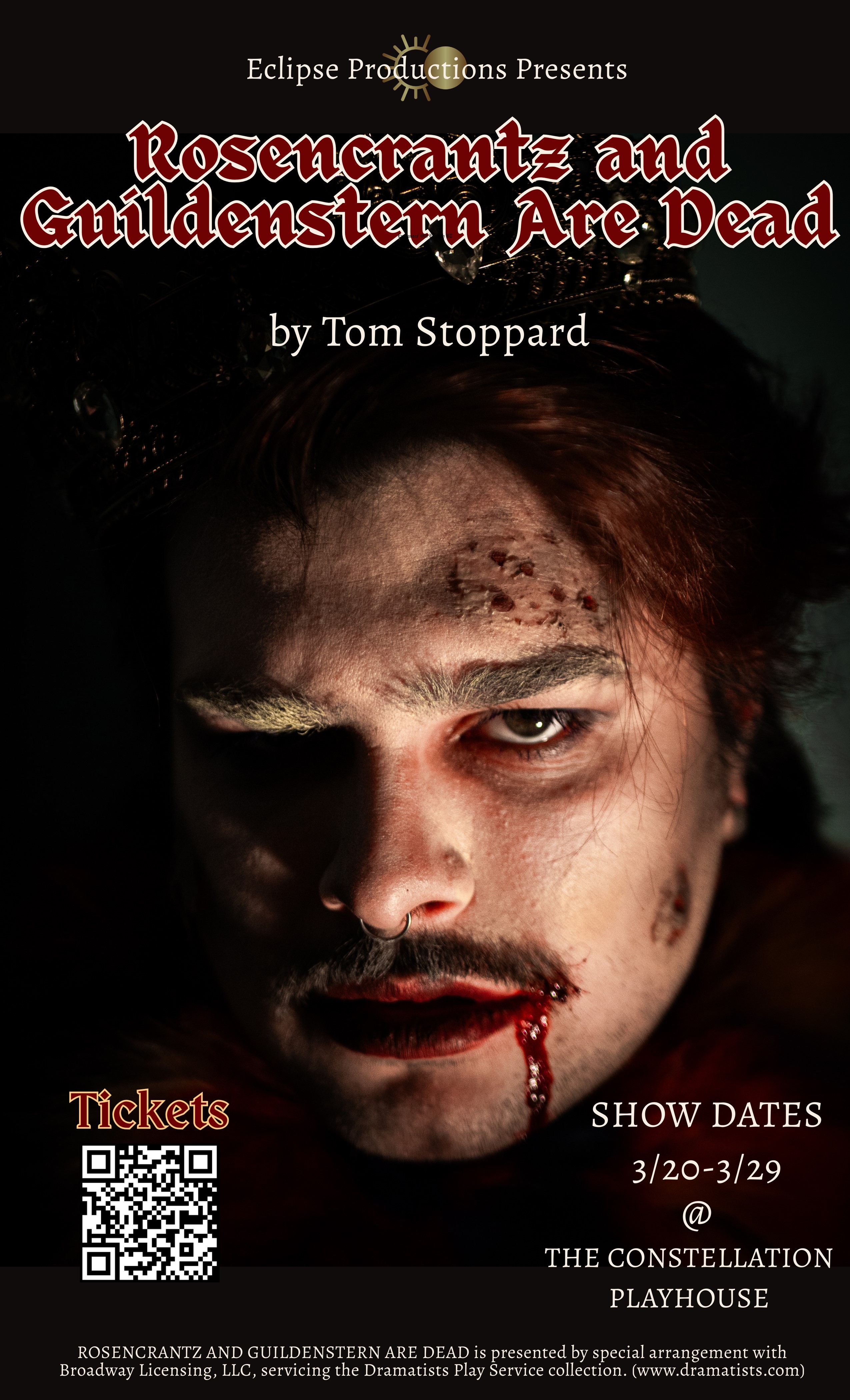 Acclaimed as a modern dramatic masterpiece, Rosencrantz and Guildenstern Are Dead is the fabulously inventive tale of Hamlet as told from the worm's-eye view of the bewildered Rosencrantz and Guildenstern, two minor characters in Shakespeare's play. In Tom Stoppard's best-known work, this Shakespearean Laurel and Hardy finally get a chance to take the lead role, but do so in a world where echoes of Waiting for Godot resound, where reality and illusion intermix, and where fate leads our two heroes to a tragic but inevitable end.