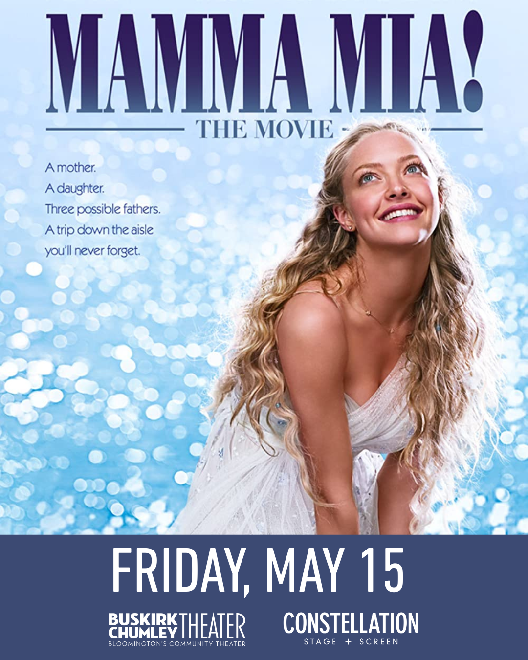 Calling all dancing queens and super troupers! Experience the magic of ABBA’s greatest hits on the big screen in this feel-good movie musical about a bride-to-be searching for her real father. Based on the Broadway musical of the same name, Mamma Mia! is a high-energy celebration of love, friendship, and timeless pop classics. Be sure to dress in your Mamma Mia-best, because we’re kicking off the screening with a costume contest! Show off your disco- and island-inspired looks for the chance to win a fabulous prize. Come early to take photos at our photo booth and grab a themed cocktail from the bar. Learn more and find tickets at https://seeconstellation.org/films/mamma-mia/